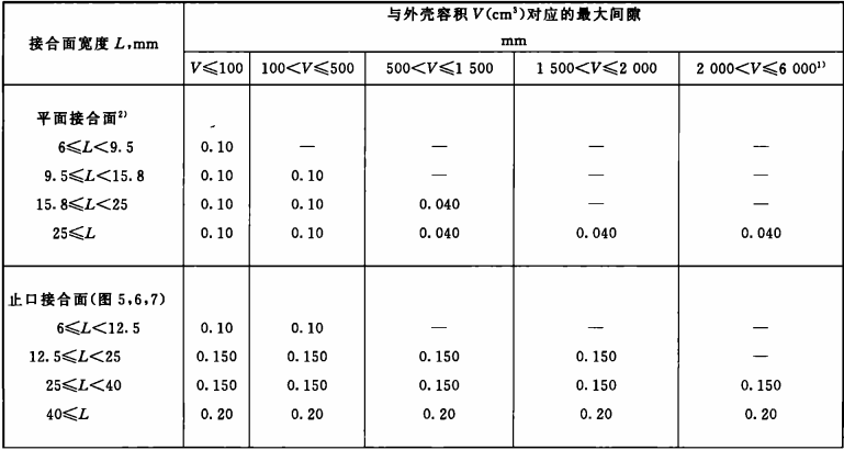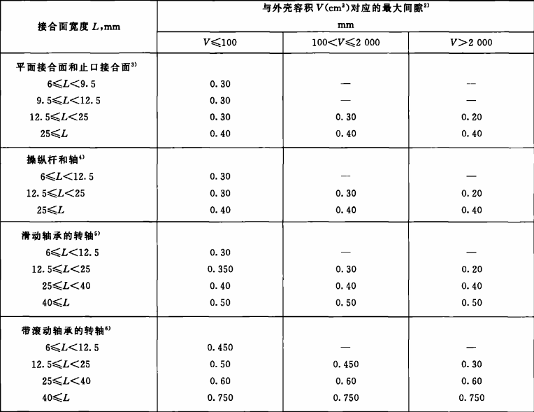 1 靠外殼壁支撐的操縱桿或軸,其接合面寬度應(yīng)不小于表 1 ~表 4 規(guī)定的小接合面寬度。
