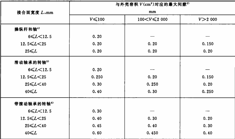 3 操縱桿或軸與穿過(guò)外殼壁孔配合的直徑間隙應(yīng)不超過(guò)表 1 ~表 4 規(guī)定的間隙值。