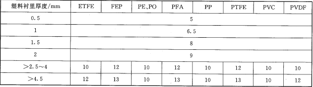 電火花試驗(yàn)儀試驗(yàn)電壓要考慮氟塑料襯里鋼管。管件的終用途和襯里厚度。測試電壓低不小于5kV,高不大于15kV 。室溫下的檢驗(yàn)電壓應(yīng)符合下表的規(guī)定。