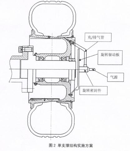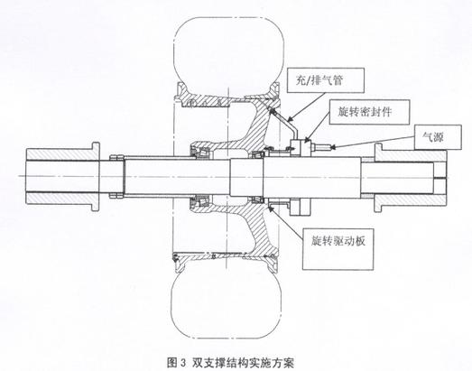 對于單支撐結(jié)構(gòu),可以在試驗(yàn)過程中按圖2所示的方式連接輪胎壓力監(jiān)控裝置,實(shí)現(xiàn)較為方便。