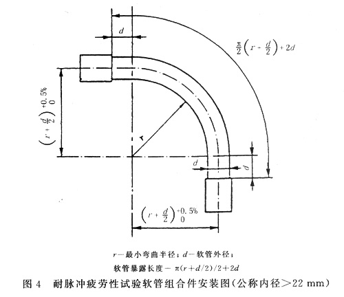 至少取軟管暴露長度為1520 mm±25 mm且每端都有接頭的軟管組合件2根,按規(guī)定測量軟管組合件的內(nèi)徑及軟管暴露長度并記錄,然后檢查軟管組合件是否滲漏,以確保密封。