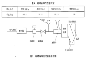 耐碎石沖擊性能檢測在專用試驗裝置上進(jìn)行,見下圖。試驗對象為散熱器芯子部分,連續(xù)噴射,一般只噴射一次。鋼丸硬度為61HRCH~65HRC,徑直4mm~5mm。試驗后再按氣密性規(guī)定進(jìn)行密封性能檢測。