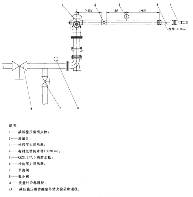 將消火栓按實(shí)際使用狀態(tài)安裝在一與管道連接的、可加壓的固定的基座上,關(guān)閉消火栓的閥門(mén),將管道內(nèi)的壓力升至公稱(chēng)壓力,用外力撞擊消火栓使之?dāng)嗔?,檢查斷裂部位及閥座的密封。判斷試驗(yàn)結(jié)果是否符合:防撞型地上消火栓在受外力撞擊后發(fā)生斷裂時(shí),只允許斷裂某一部件,栓體和閥體應(yīng)完好無(wú)損,閥座應(yīng)無(wú)滲漏現(xiàn)象。