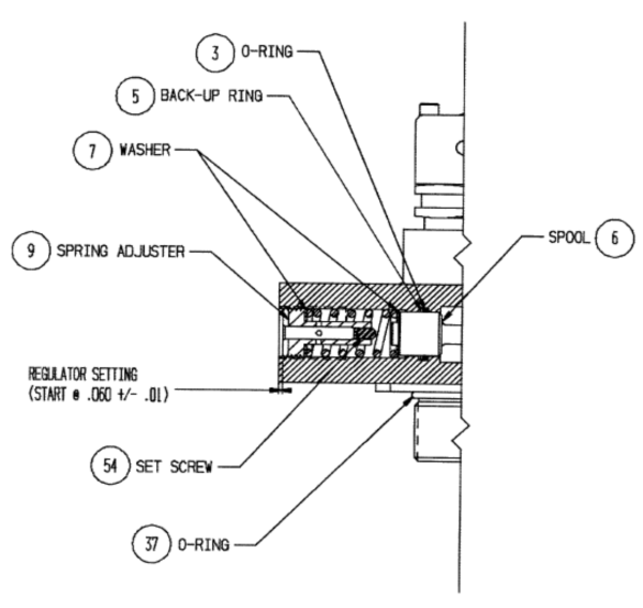 b. 圖2展示了如何測量調節(jié)設置。彈簧調節(jié)器(9)軸向移動每0.001in.輸出壓力調節(jié)約1.4psig。旋進(順時針)增加輸出壓力,旋出(逆時針)減小輸出壓力。