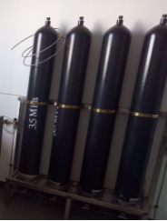 高壓儲氣系統(tǒng)包含4個容積為40L,使用壓力為31.5Mpa的鋼瓶組,4只鋼瓶分別有獨立的鋼瓶截止閥,每只截止閥都帶有安全閥,有鋼瓶支架等。所有的高壓鋼瓶均為符合中國壓力容器標準。高壓鋼瓶固定在鋼瓶支架上,之間采用不銹鋼管連接。管道采用喇叭口與其它管路連接,在現(xiàn)場安裝時,不需要燒電焊。 |