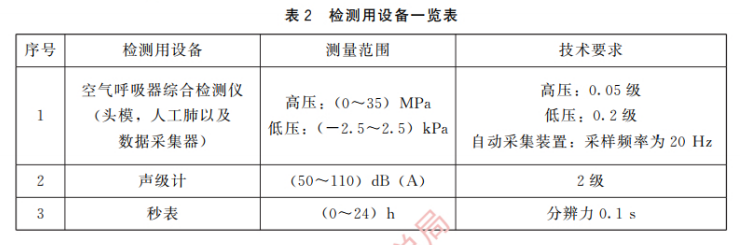 b)設(shè)定人工肺呼吸頻率 25 次/min,呼吸流量 50L/min。測量高壓總管壓力在2 MPa至1MPa范圍時面罩內(nèi)呼吸阻力的最大值和最小值。
